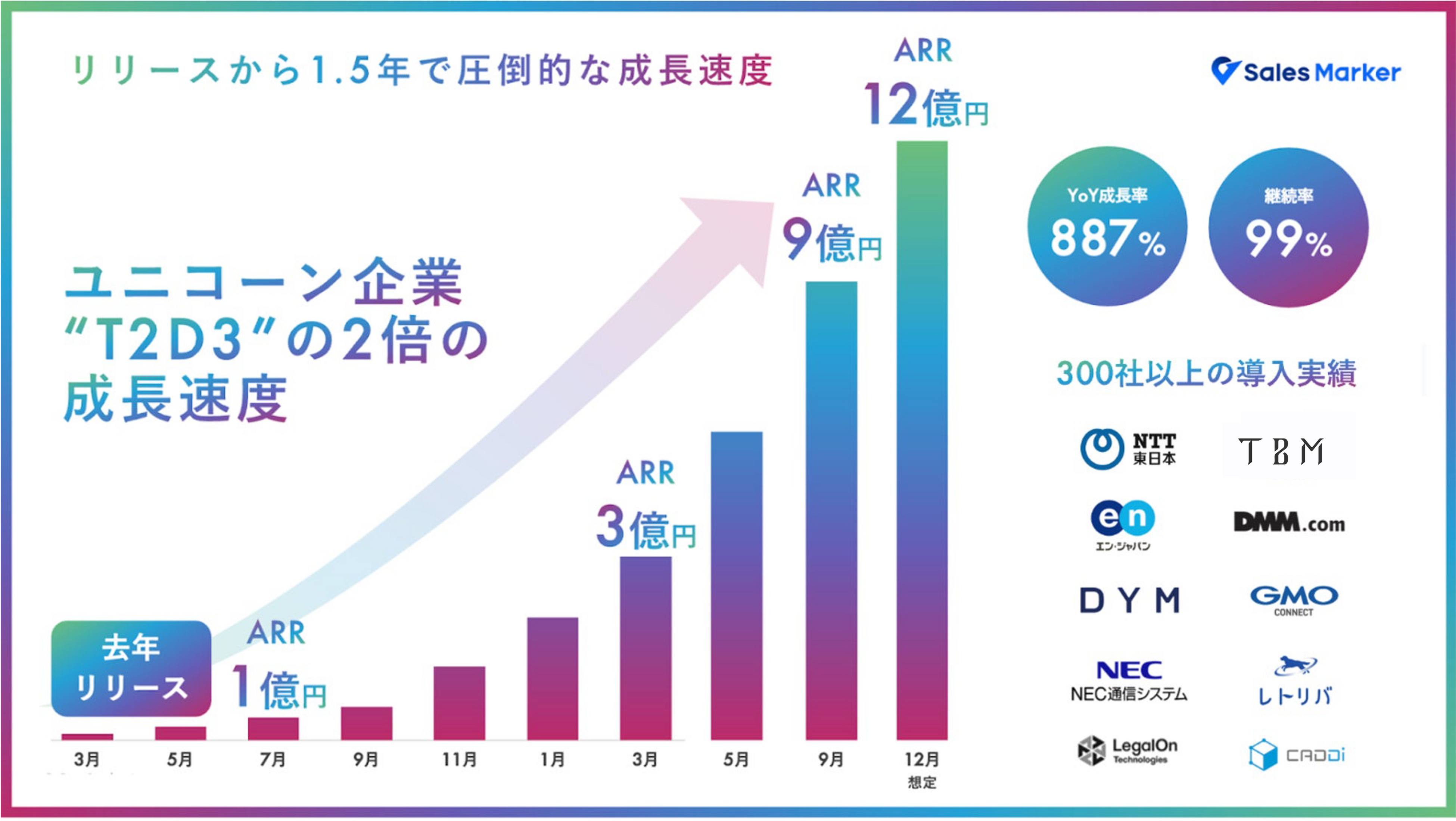 事業成長率約900%、世界初※1「AIセールス」機能を搭載したインテントセールスSaaSの『株式会社Sales Marker』がシリーズAで8.4億円を調達