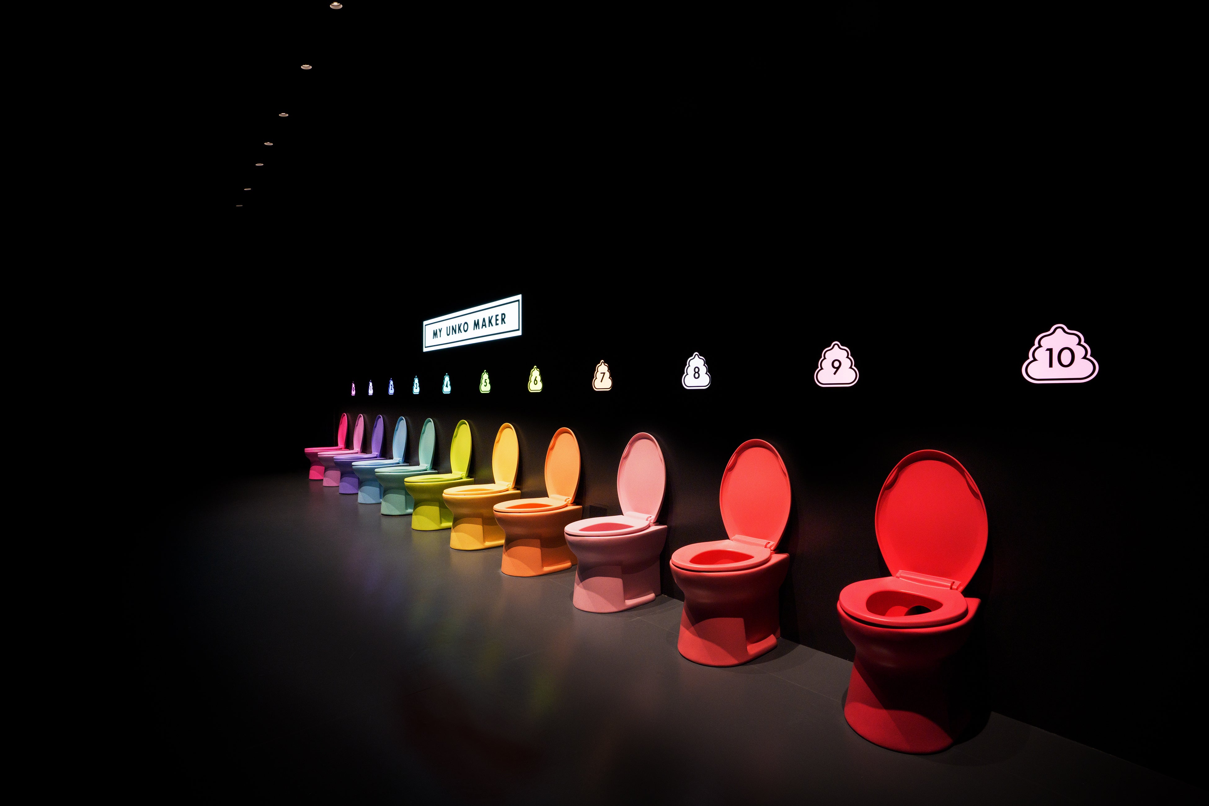 カラフルな便器に座って、うんこミュージアムをともに巡る「マイうんこ」を生み出しましょう。うんこミュージアムに入館して最初に体験するコンテンツで、うんこへの固定観念を水に流す場所でもあります。
