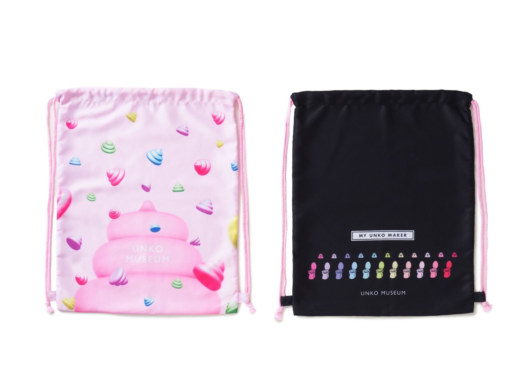 うんこミュージアムの象徴が巾着になりました。バッグの中も楽しく機能的に整理できます。