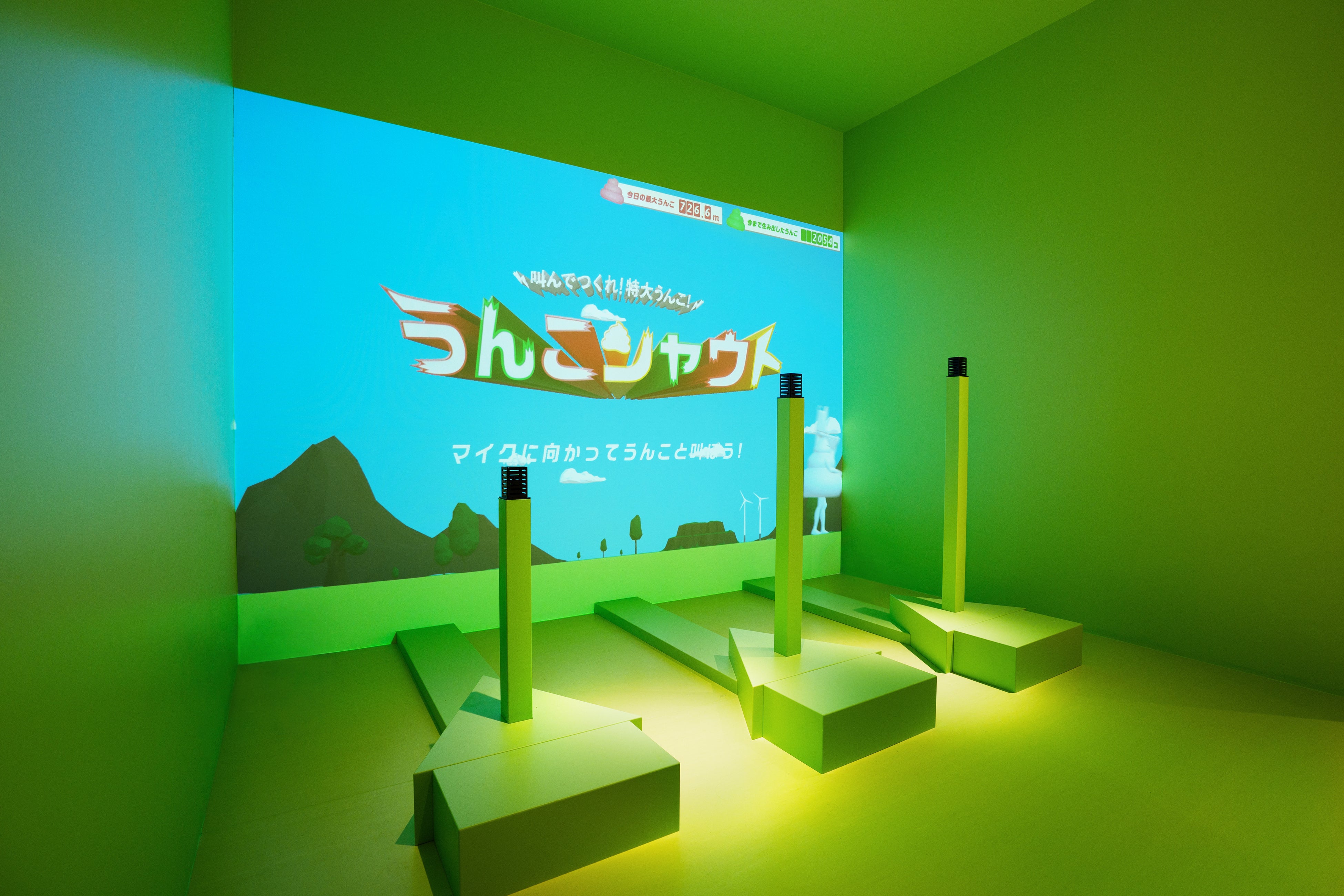 世界中のうんこエネルギーを蓄える巨大な火山です。定期的にカウントダウンが始まり、0になるとたくさんのうんこが勢いよく噴火!会場中が一体になります。