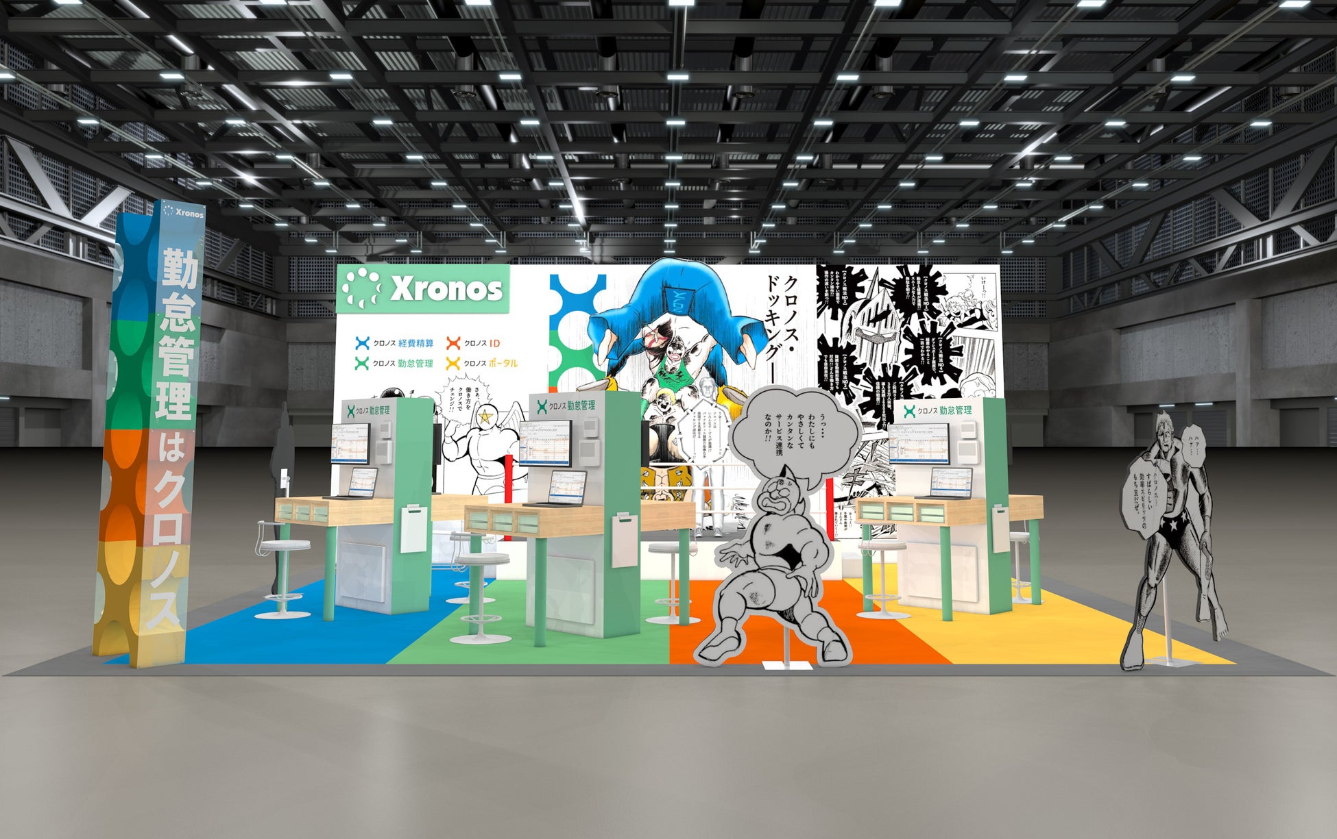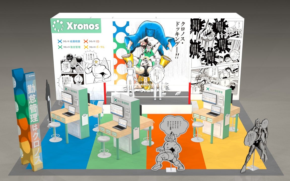 当社ブースでは、人気漫画『キン肉マン』とのタイアップ企画として、連携から生まれた新技「クロノス・ドッキング」を披露した展示を中心に、バックオフィス業務のさらなる効率化を実現するクロノスの最新ソリューションをご紹介いたします。
