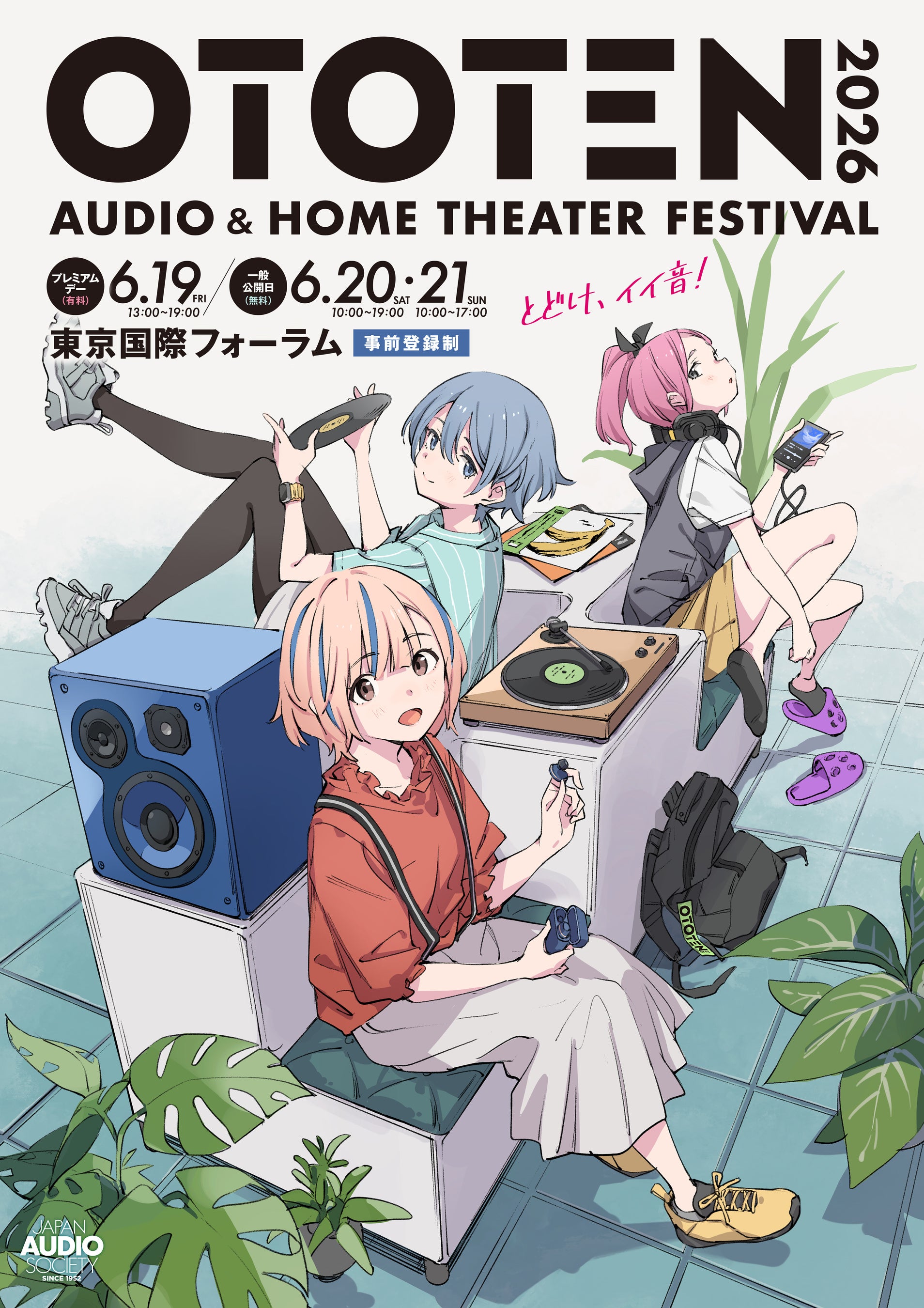 一般社団法人日本オーディオ協会(所在地:東京都港区、会長:小川理子)は2026年6月19日(金)~21日(日)の3日間開催する「OTOTEN2026」について、本日より来場事前登録を開始いたします。あわせてVTuber「AZKi」さんと、声優・歌手「安野希世乃」さんのアンバサダー就任、プレミアムデー特別イベントの開催決定、キービジュアルを公開いたします。