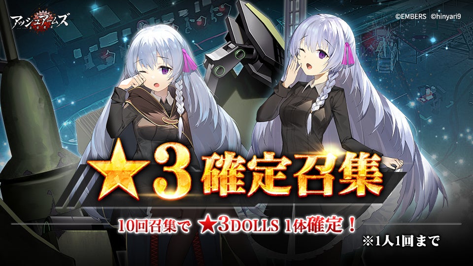 有料結晶石限定で10回の召集を行い、そのうち☆3 DOLLSが1体以上確定で出現します。
