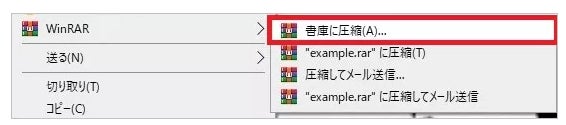 Step1:ファイルを右クリックして「WinRAR」から「書庫に圧縮」を選びます。