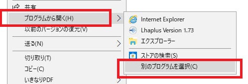 Step1:RARファイルを右クリックして「プログラムから開く」から「別のプログラムを選択」を押します。