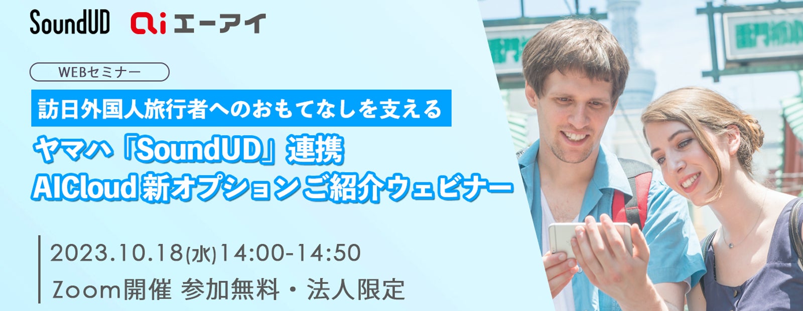 【10月18日オンライン開催】訪日外国人旅行者へのおもてなしを支えるー ヤマハ「SoundUD」連携AICloud新オプションのご紹介ウェビナー(ゲスト:ヤマハ株式会社)開催のお知らせ