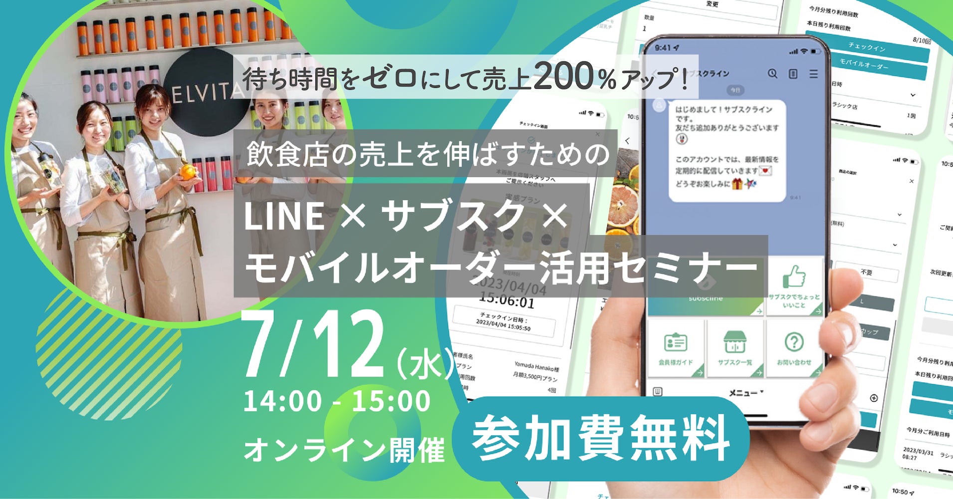 初の共催セミナーを7/12 14:00~開催! 【待ち時間をゼロにして売上200%アップ!】飲食店の売上を伸ばすためのLINExサブスクxモバイルオーダー活用セミナー