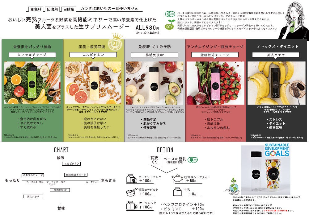さらに、お客様の満足度向上に貢献するもう一つの施策として、注文時に自由にオプションを選択できることがあります。美容ドリンク専門店ELVITAでは、プロテインやビタミンC、豆乳・牛乳・オーツミルク・アーモンドミルク・ハーブティーなどのベースをお客様の気分に合わせて選ぶことができます。また、シロップの有無も選択可能です。これにより、お客様の細かな要望に合わせた商品を提供することができ、お客様の満足度を高めることができます。また、他店との差別化にも繋がります。