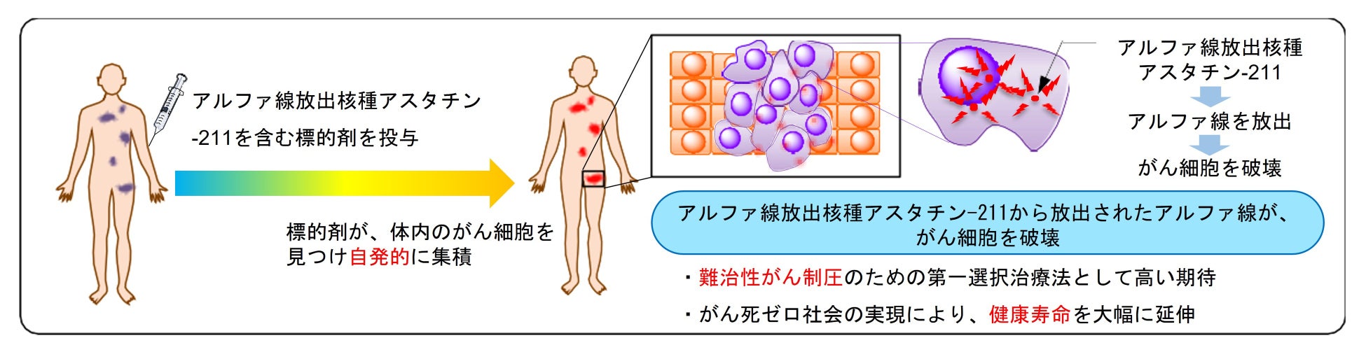 難治性進行がんへの新治療法であるアルファ線核医学治療は、外来での治療が可能であり、患者のQOLを顕著に向上させることができるため、国内外で医療イノベーションを促すと期待されています。