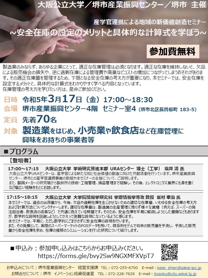 3月17日開催「安全在庫の設定のメリットと具体的な計算式を学ぼう」産学官連携による地域の新価値創造セミナー