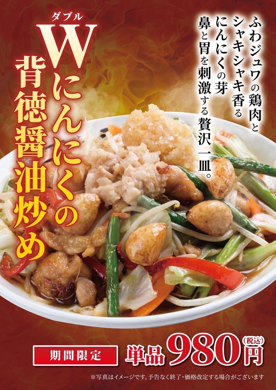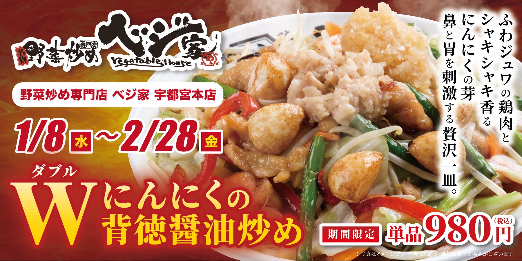 【野菜炒め専門店ベジ家】にんにくの背徳感抜群!『Wにんにくの背徳醤油炒め』を1月2月の期間限定で販売します!