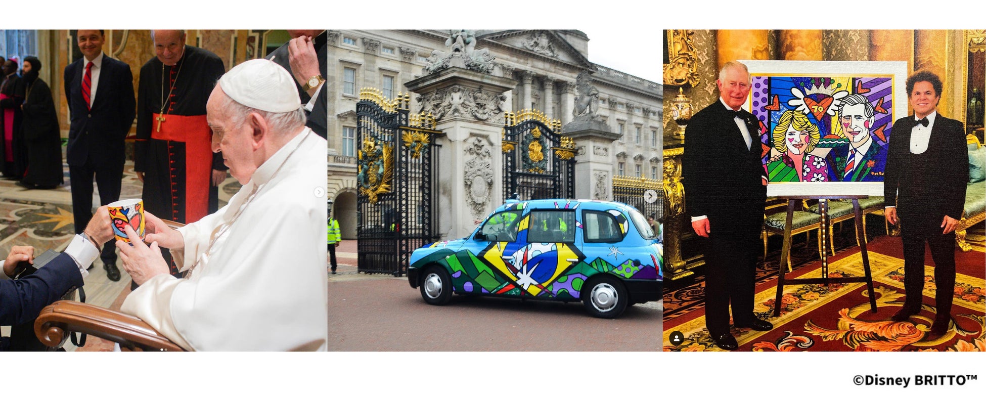 キュービズム、ポップアート、グラフィティベインティングの要素を組み合わせ、希望・夢・幸福を鮮やかな色彩と大胆なパターンで視覚的に表現しているロメロ ブリット。「現代のピカソ」とも称される彼は、チャールズ国王の戴冠式へ招待されるなど、英国のロイヤルファミリーを始めとしたヨーロッパの皇族及び世界の多くのセレブリティー達から愛されています。