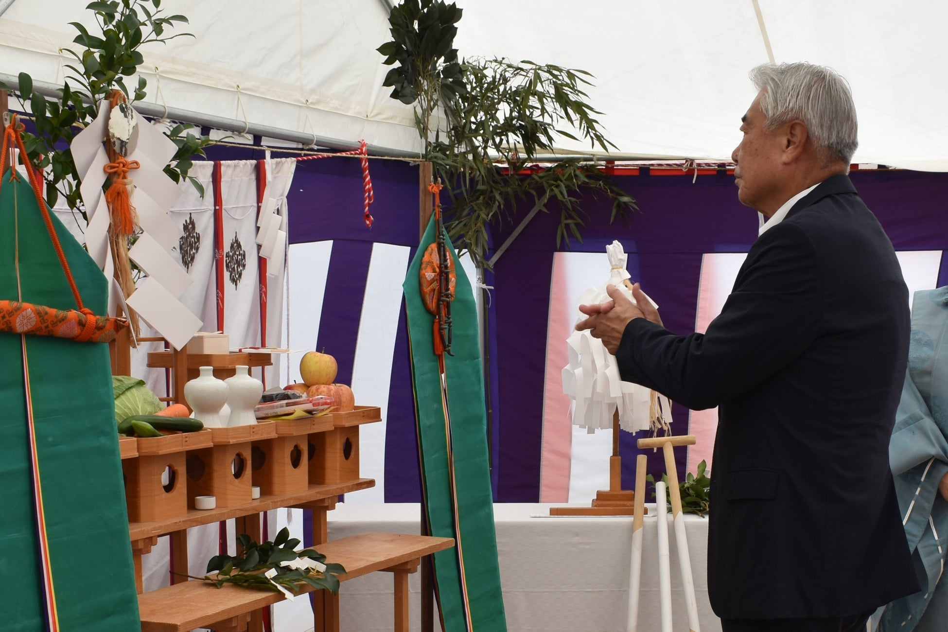 8月20日、『音ラボ』の着工にあたって、起工式を開催いたしました。当日は、当社および設計・施工業者の関係者など、計23名が出席し、『音ラボ』建設工事の安全を祈願しました。