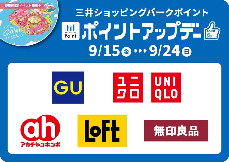 5周年を記念して、三井ショッピングパークカード≪セゾン≫などの対象カードにてお支払いで100円(税抜)につき