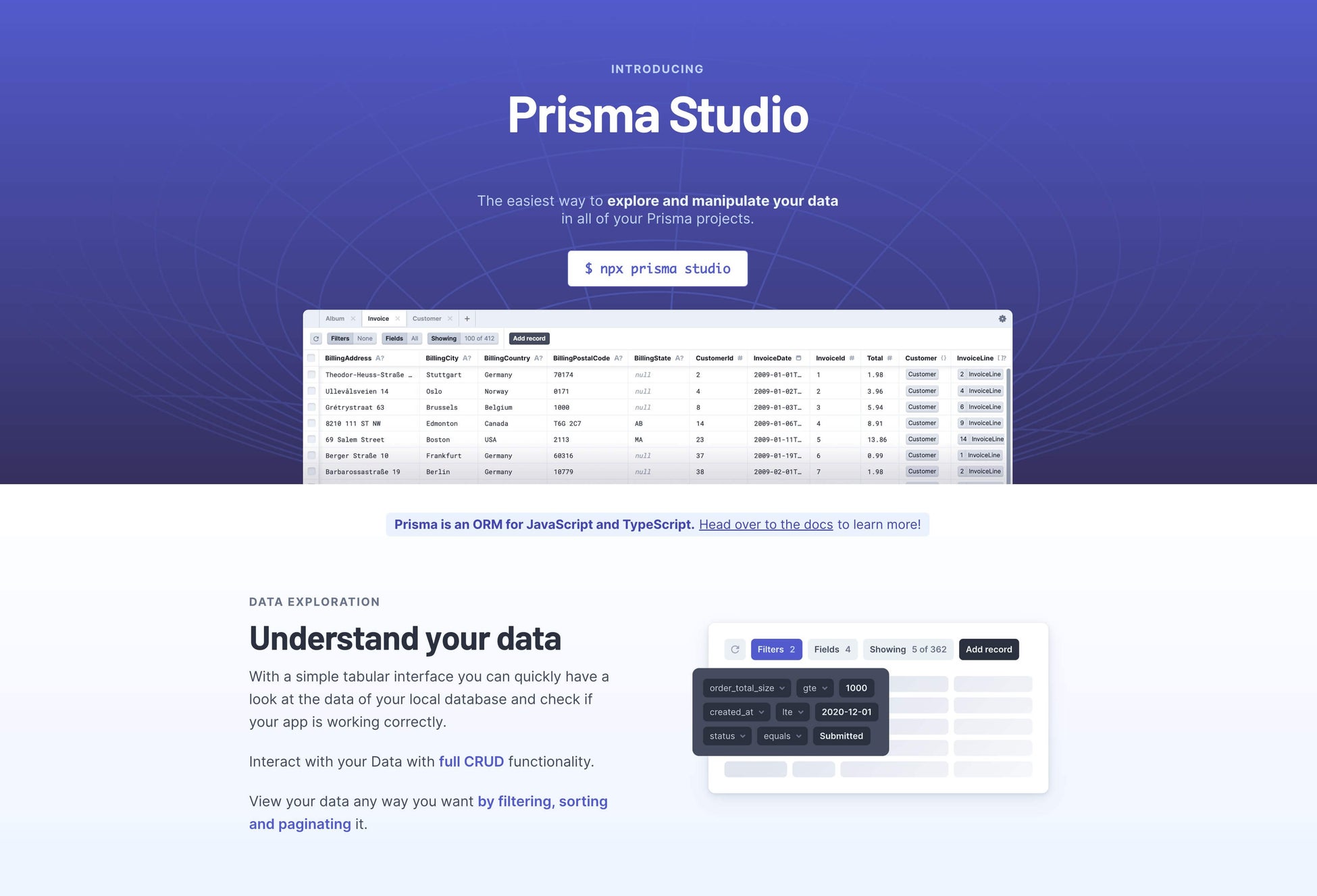 Prisma (https://www.prisma.io/)は、SQL(リレーショナルデータベース)を TypeScript や JavaScript で簡単に扱うことができる ORM です。Skeet では Prisma を用いてデータベースのスキーマをシンプルかつ柔軟に定義でき、マイグレーションは自動生成され、開発に役立つ TypeScript の型も提供されます。また、Prisma Studio はデータベースを GUI で操作することを可能にし、開発者がデータの操作や確認を容易に行うことができます。