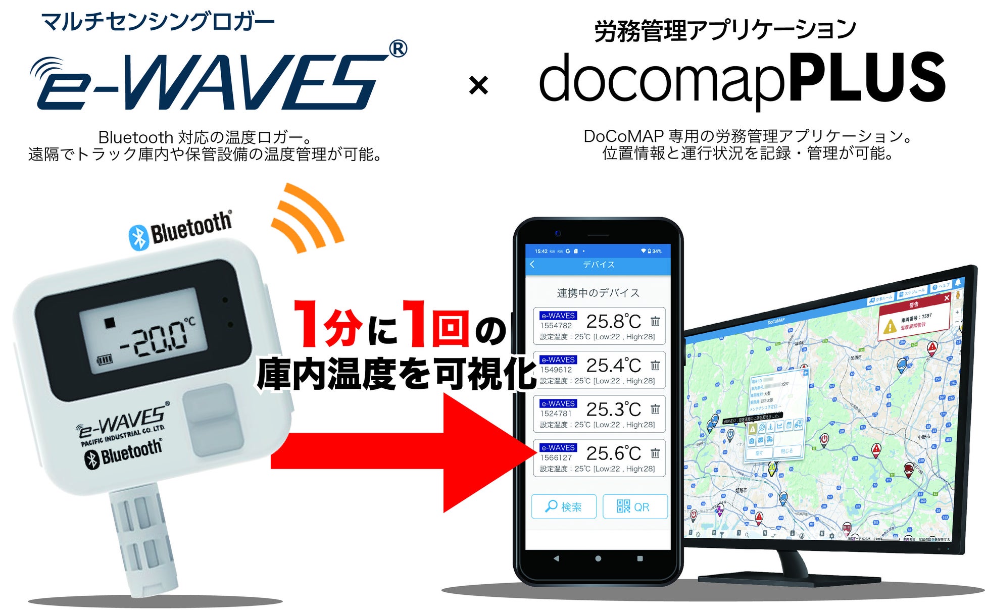 ・太平洋工業の温度ロガー 「e-WAVES」BLEタイプと連携し、温度管理ソリューションを強化(株式会社ドコマップジャパン)