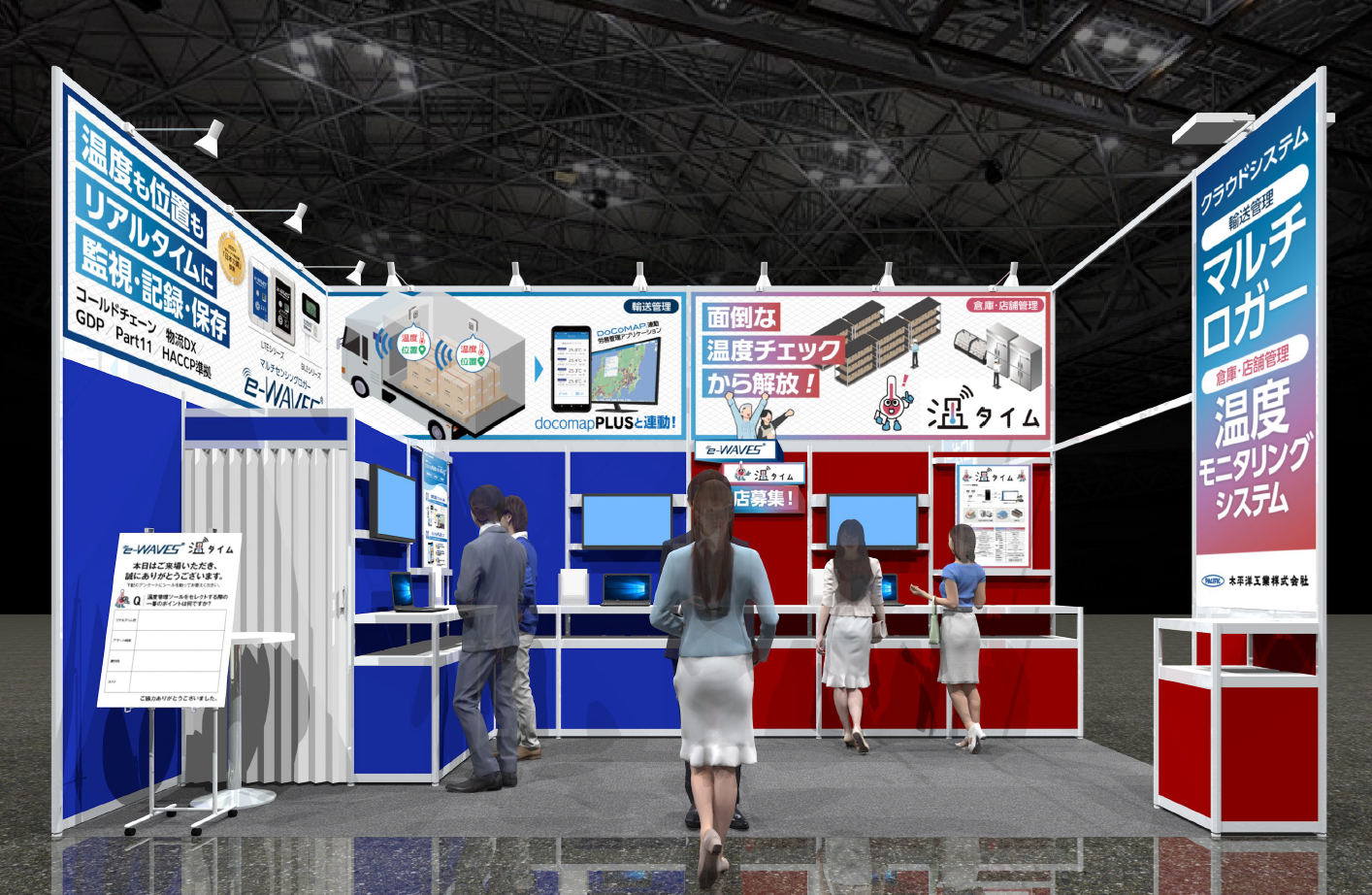 2025年10月にリリースし、ご好評をいただいている定置向け温度管理ソリューション「温タイム」に加え、株式会社ドコマップジャパン(本社:東京都港区、代表取締役:浦嶋一裕)の車両位置情報管理サービス「DoCoMAP(ドコマップ)」との連携サービスもご紹介いたします。気温上昇に備えた温度管理体制の構築には、まさに今が最適なタイミングです。ぜひご来場くださいませ。