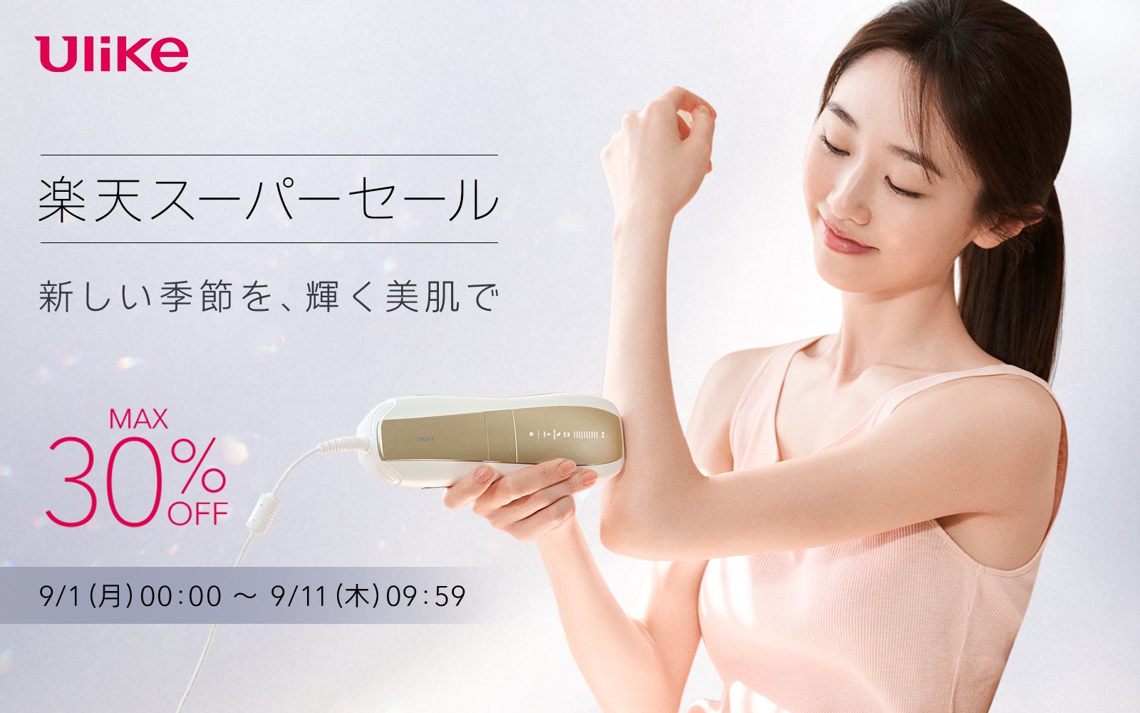 家庭用美容機器メーカー「ユーライクジャパン株式会社」(本社:東京都港区)は、9月4日(木)20時00分から開催される『楽天スーパーセール』に先行して、運営するULIKE CARE楽天市場店にて9月1日(月)0時00分より光美容器世界No.1(*1)ブランド「Ulike(ユーライク)」のベストセラーモデルや新商品を、最大30%OFFのセール価格で販売いたします。