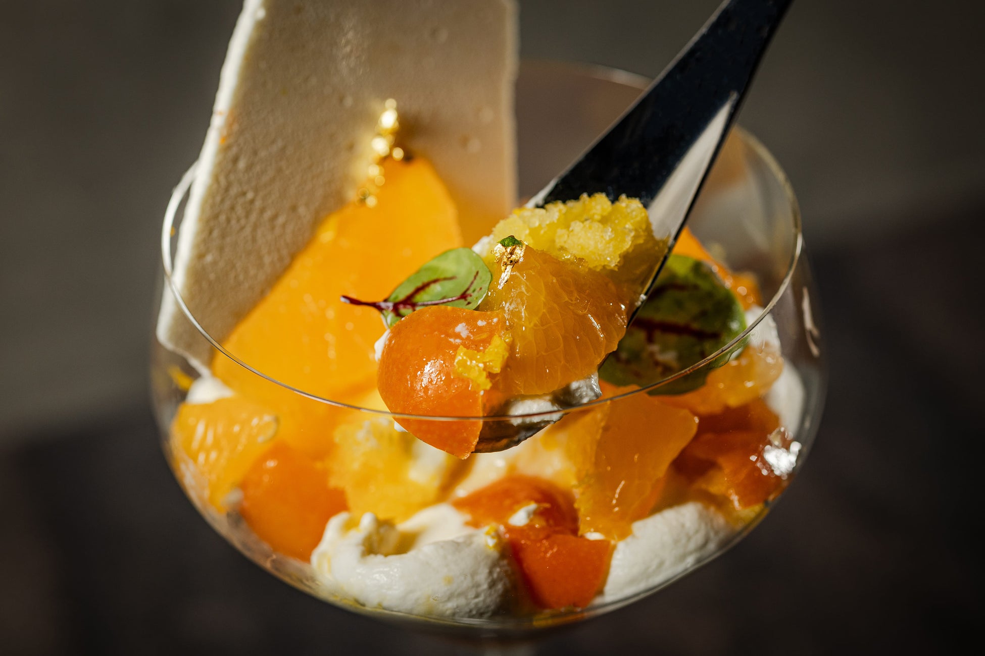 ■1月限定パフェ「和柑橘とゆずと新酒のバヴァロワパフェ」