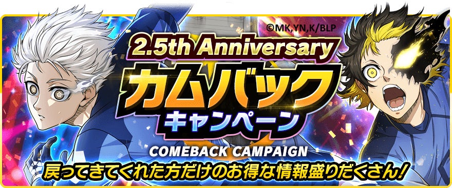 🎉サービス開始2.5周年🎉『ブルーロック プロジェクト:ワールドチャンピオン』が2.5th Anniversaryを記念したプレイヤー大感謝キャンペーンを開催中!