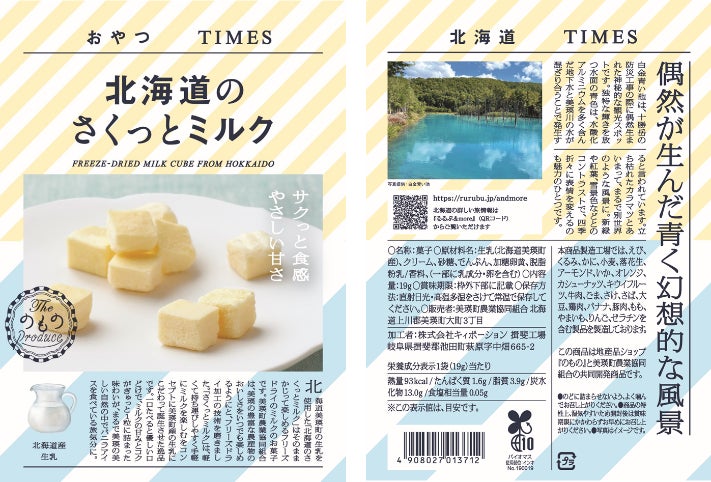 〇「北海道のさくっとミルク」は、北海道美瑛町産の生乳を使用したフリーズドライのミルクのお菓子です。つまみやすい一口サイズにし、ミルクの甘味とコクが手軽に味わえるお菓子に仕立てました。