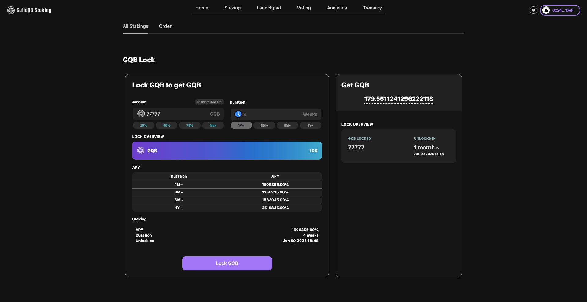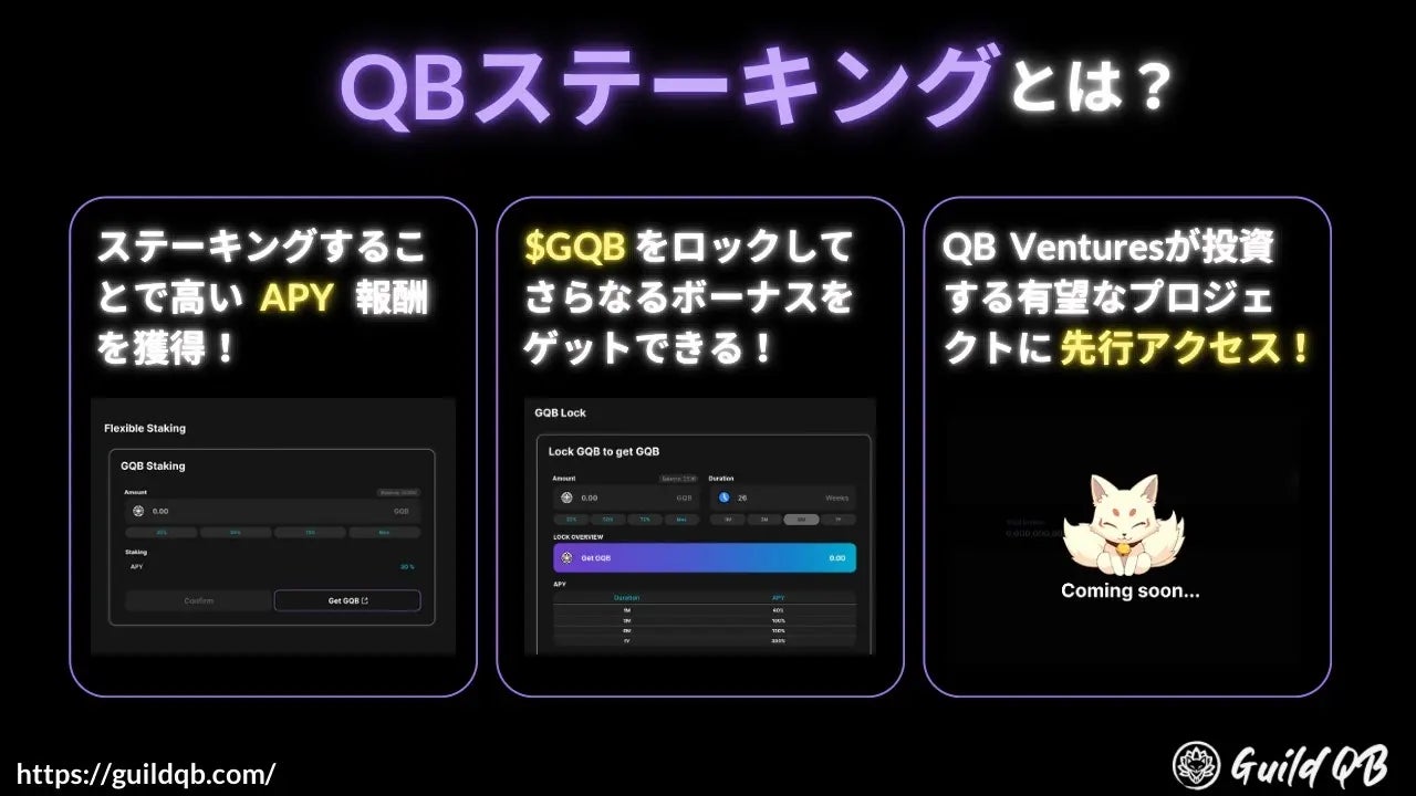 GuildQBは今回のロック付きステーキング機能の提供を皮切りに、さらなる利回り強化とユーザーインセンティブの拡充を進めてまいります。