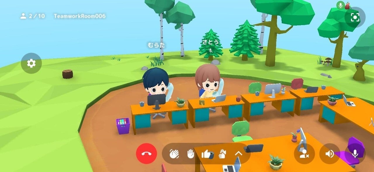 各自任意の場所で働きながらも業務で利用するPCの横に置いたスマートフォン、タブレット※1 からカジュアルな空間に好きな3Dアバターで参加いただくことで常にチームメンバーを近くに感じながら働くことができ、気軽に話しかけることができます。みんなの「今」を共有し、ベストなタイミングでストレスなくコミュニケーションができるため、社員の心理的安全性を高め、「ちょっとした相談」や「気軽なアイディアの共有」がしやすい雰囲気を醸成し、生産性・創造性の向上を図ります。