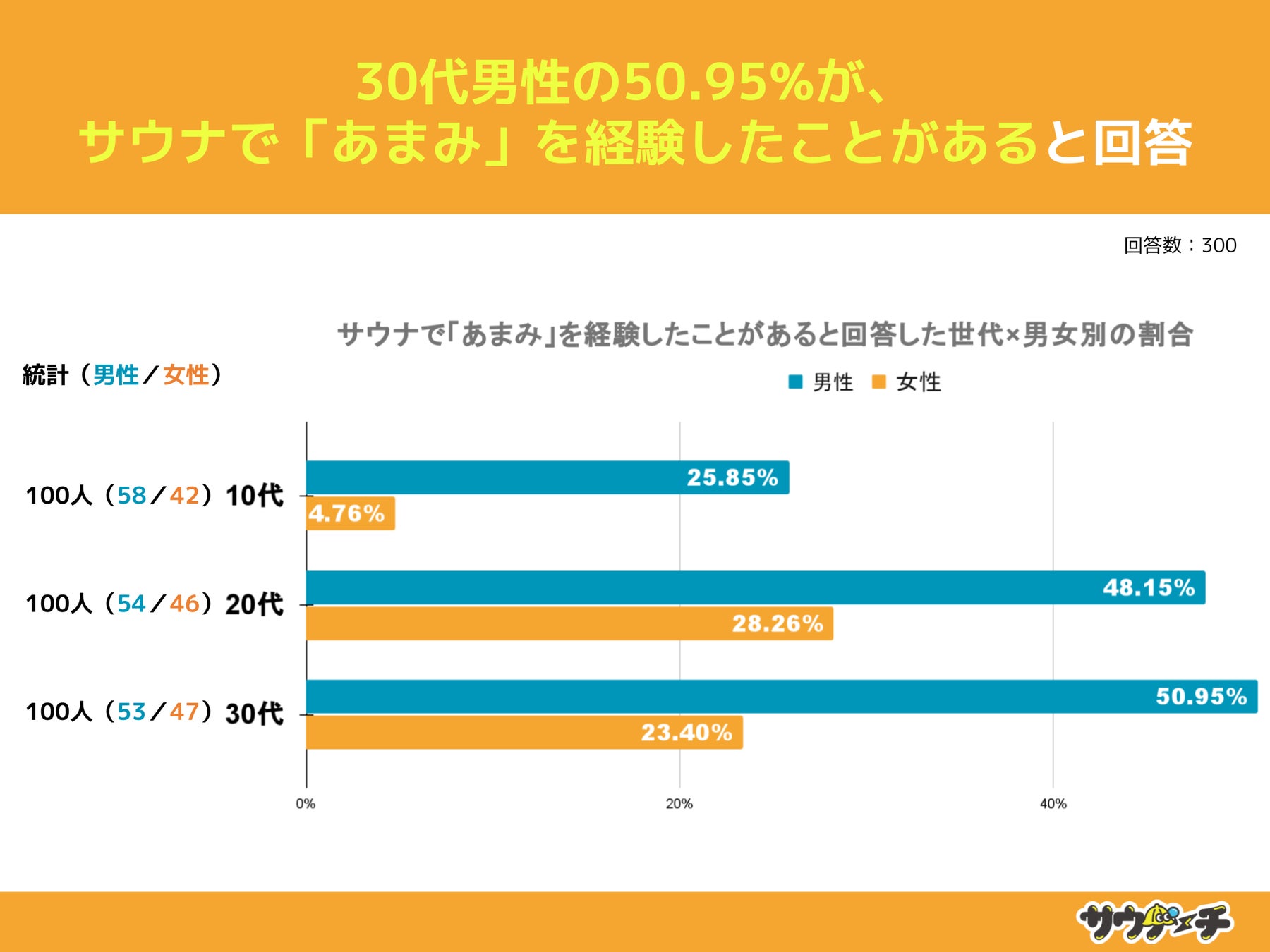 【30代男性の50.95%が、サウナで「あまみ」を経験したことがあると回答】