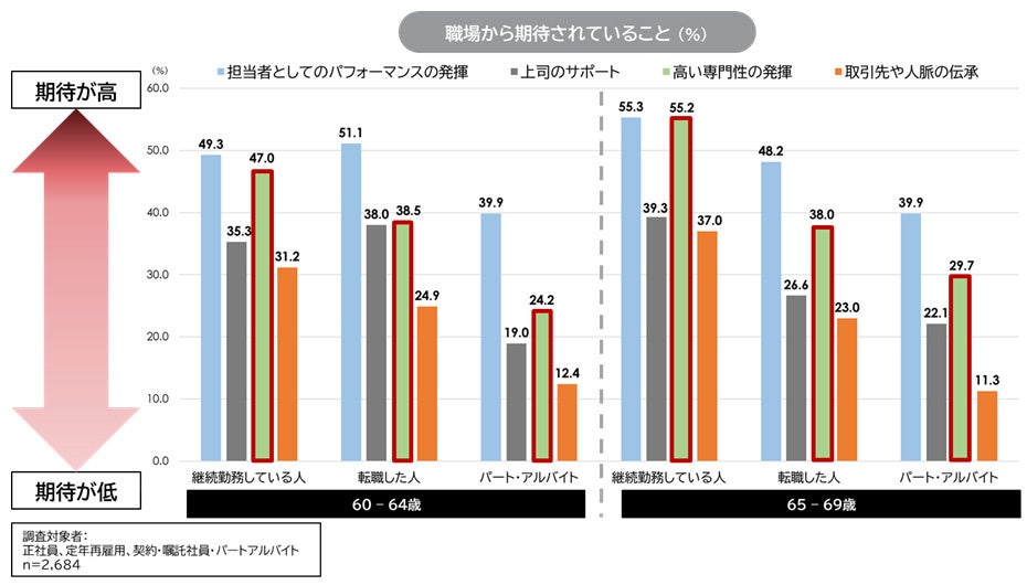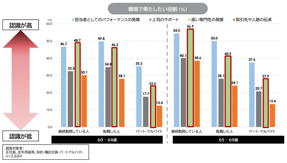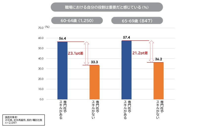 しかし、今回の調査では、企業側の視点として、60代が自社の中核業務を担う基幹戦力人材として機能しているかというと、疑問が残る結果になっている。