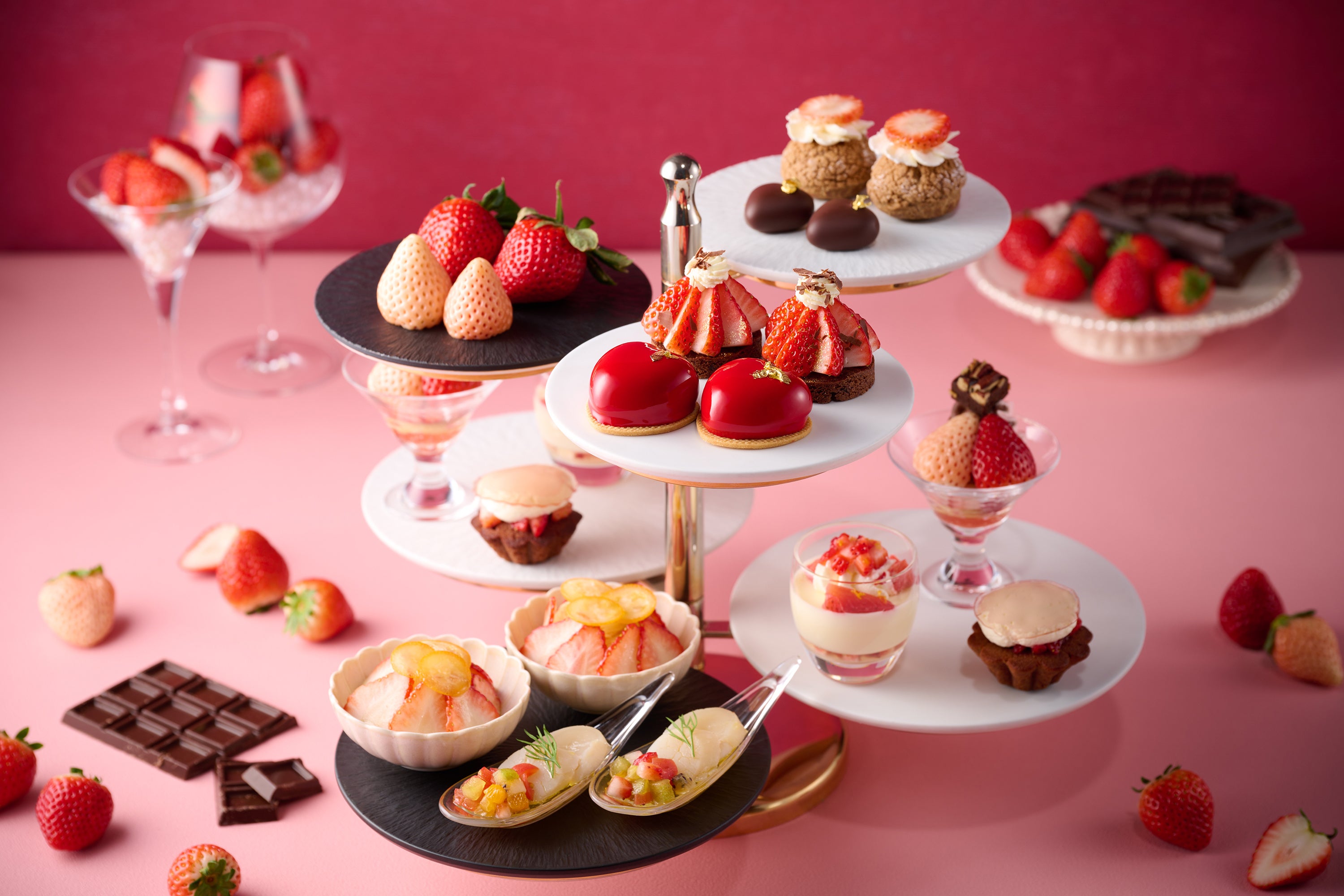 ■7品種の国産いちごとチョコレートが織りなす、甘酸っぱくてほろ苦いアフタヌーンティー