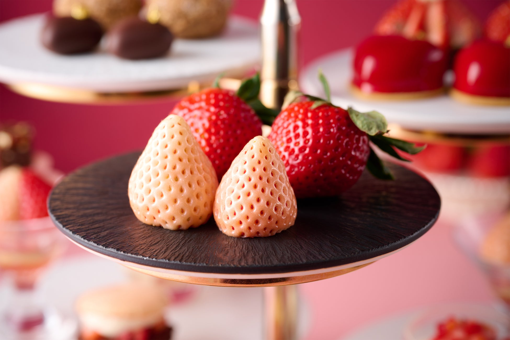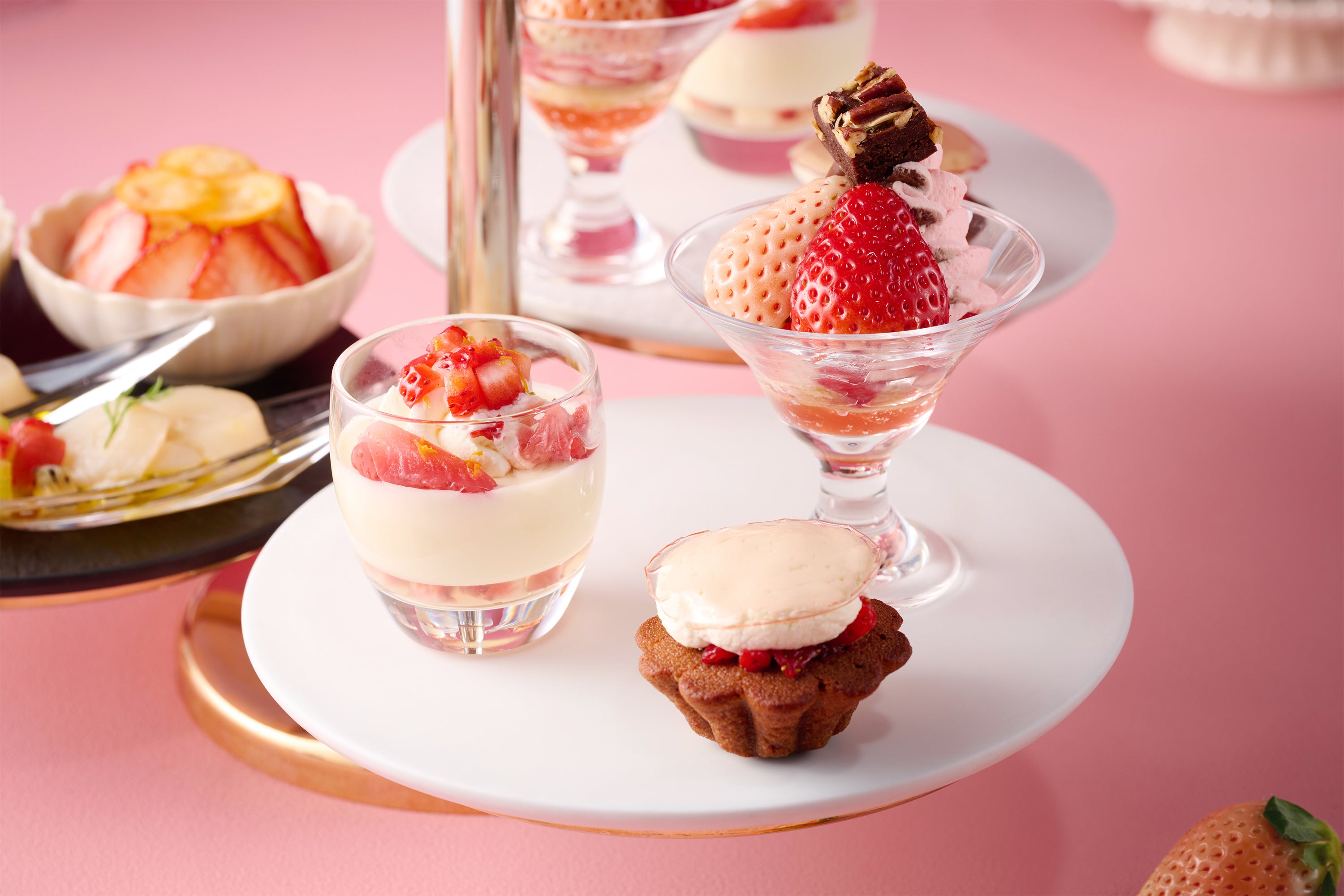 さらに、いちごと季節のフルーツを取り入れたセイボリーのほか、「全国いちご選手権」で3連覇を果たし、極上の甘みで注目を集める埼玉県産高級いちご「あまりん」と、ほんのり桜色を帯びた白いちご「淡雪」をフレッシュで味わう盛り合わせもご用意しました。