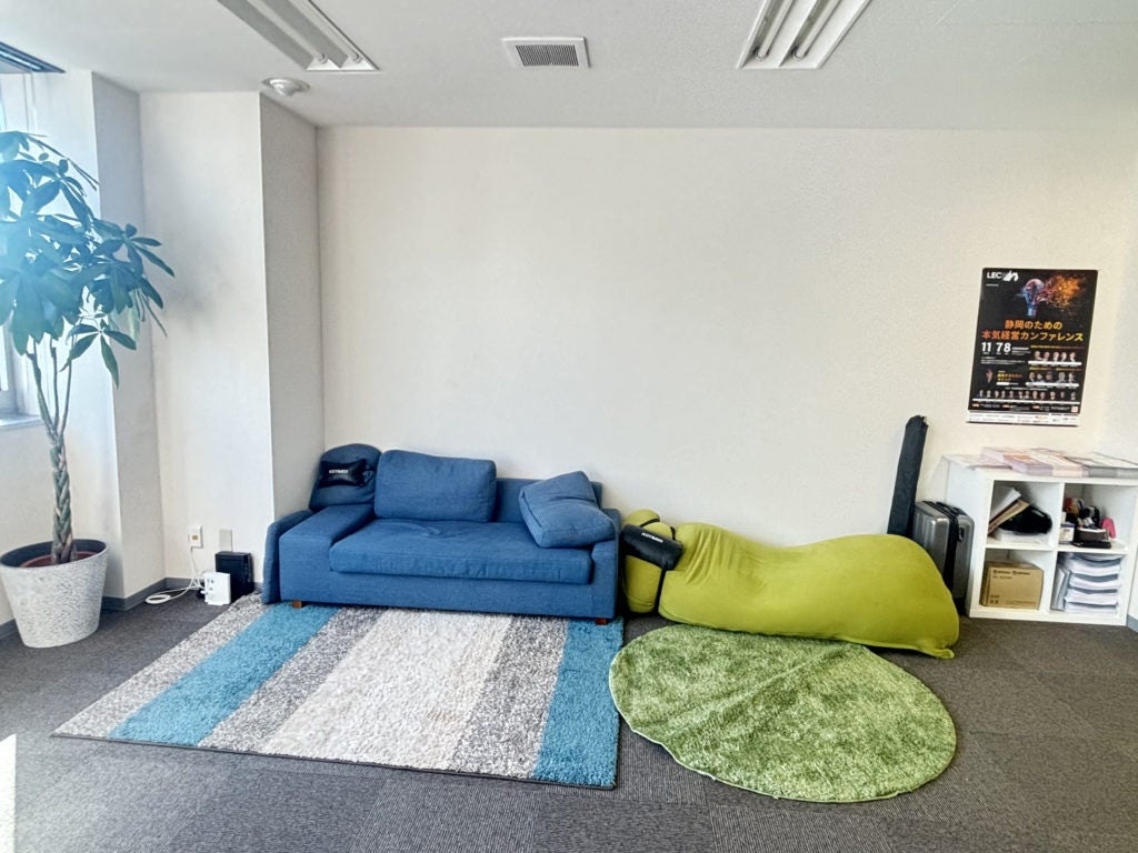新オフィスは、静岡駅からのアクセスに優れ、眺望の良いロケーションと、緑×白を基調にした集中・リフレッシュの両立を意識した設計が特徴です。ゲーミングチェアの採用や休憩スペースの整備など、クリエイティブと生産性の最大化を目指した空間づくりを行いました。