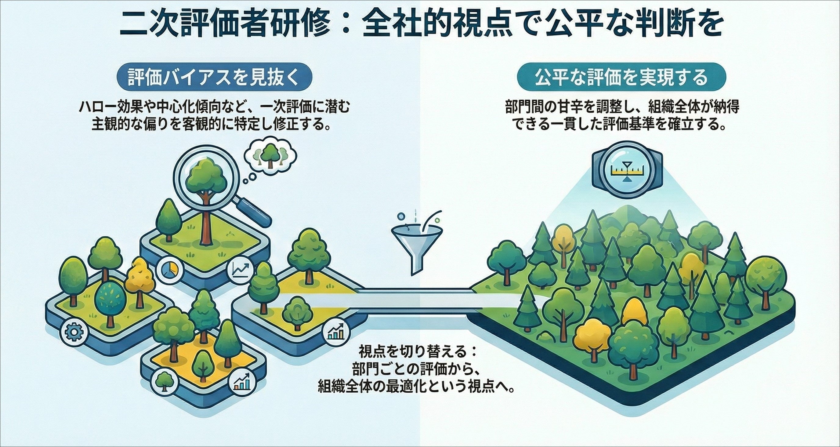 二次評価者に求められる組織全体の最適化という視点の習得。
