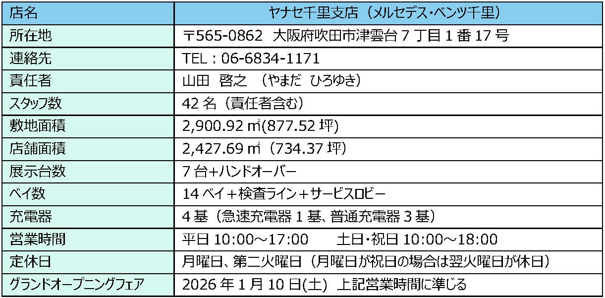 株式会社ヤナセ(社長:森田 考則)は、ヤナセとして近畿エリア2拠点目となる最新のメルセデス・ベンツ ショウルームCI、「MAR20X(エムエーアール・トゥエンティ・エックス)」を採用した「ヤナセ千里支店」(メルセデス・ベンツ千里)の営業を1月9日(金)に開始します。