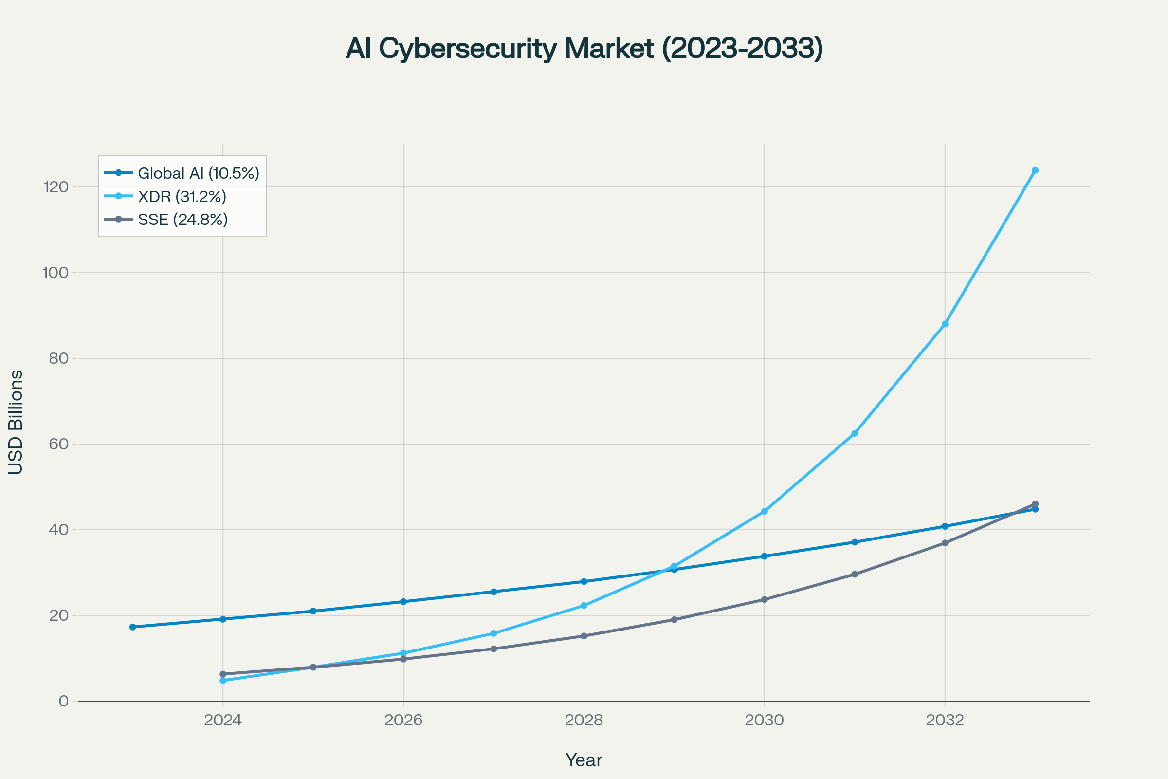 →XDR(拡張検出・対応)市場は特に急速な成長を示し、CAGR 31.2%で2033年174.4億ドルに達する予想