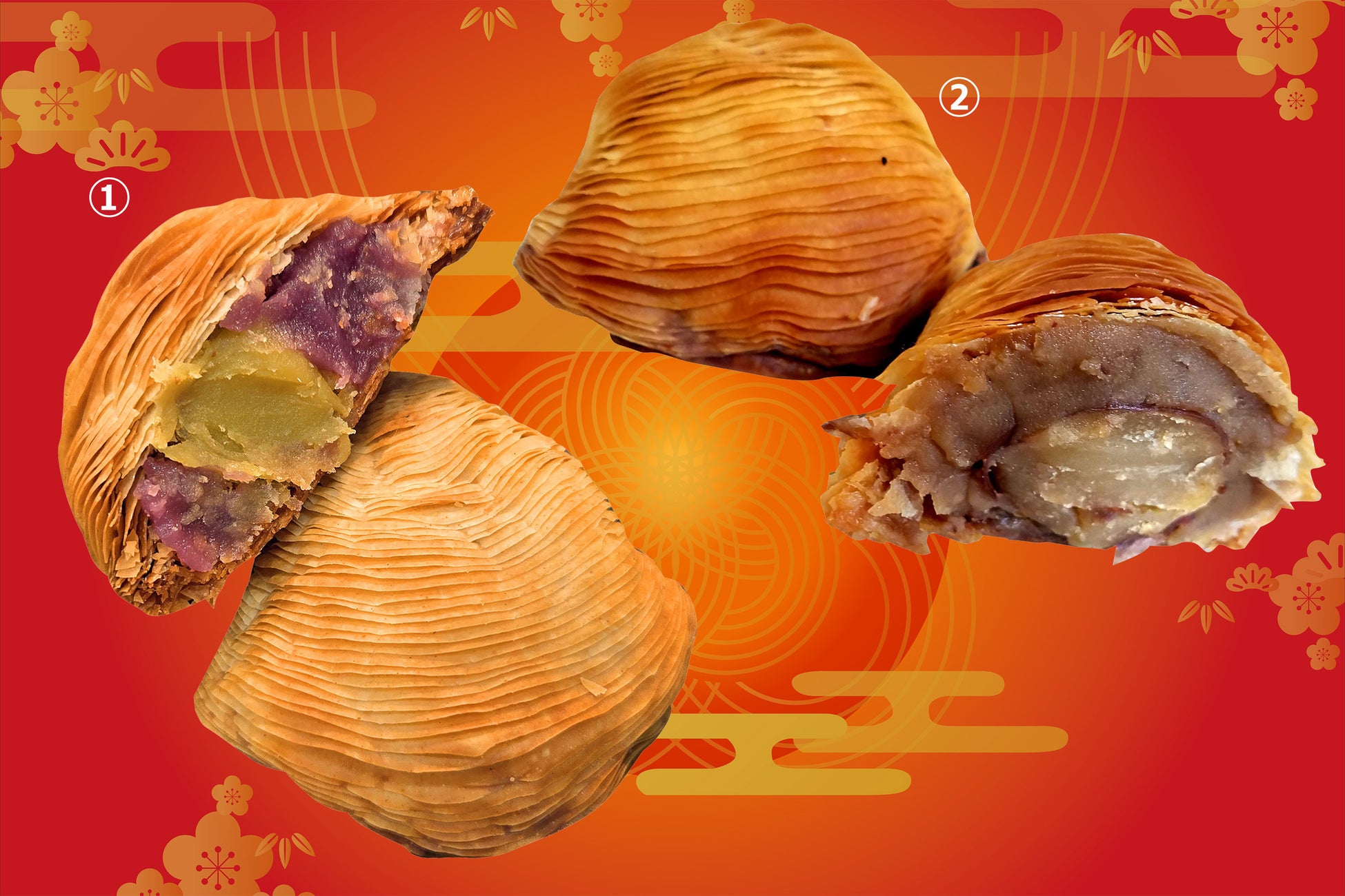 ①スフォリアテッラ(紅芋&スイートポテト)(1個)各420円 ★各日100個限り