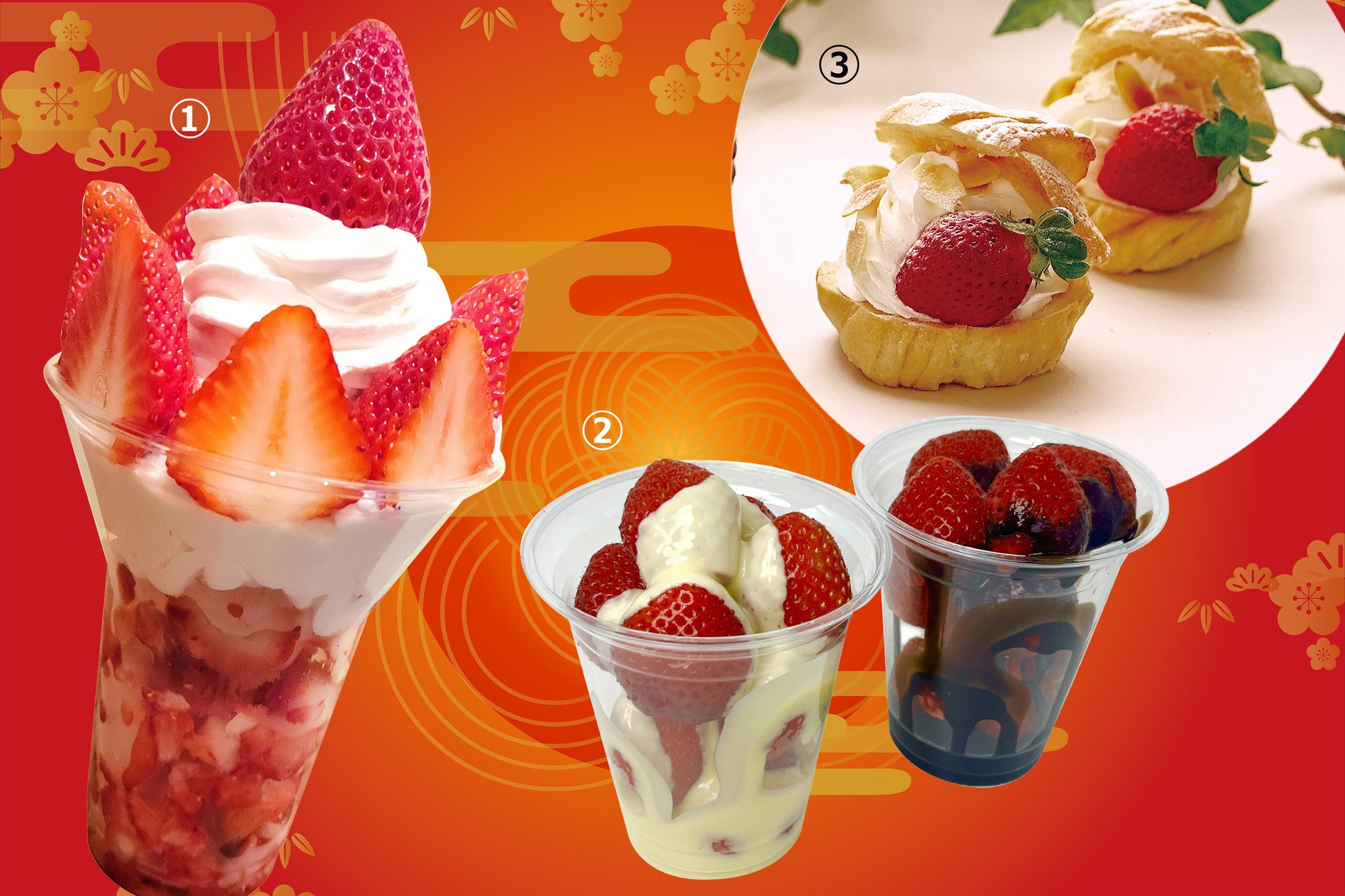①博多あまおうパフェ(1杯)1,200円