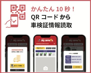 マイカーの自動車検査証(車検証/自動車検査証記録事項*)を手元に準備頂き、右下にあるQRコードを対象種別車両選択の上、スマホカメラで読み取るだけで簡単にお車の情報が取得できます。