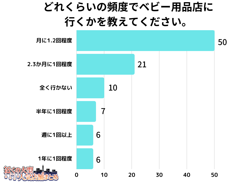 【調査レポート】どれくらいの頻度でベビー・赤ちゃん用品店に行くか教えてください。1位は『月に1.2回程度』でした!