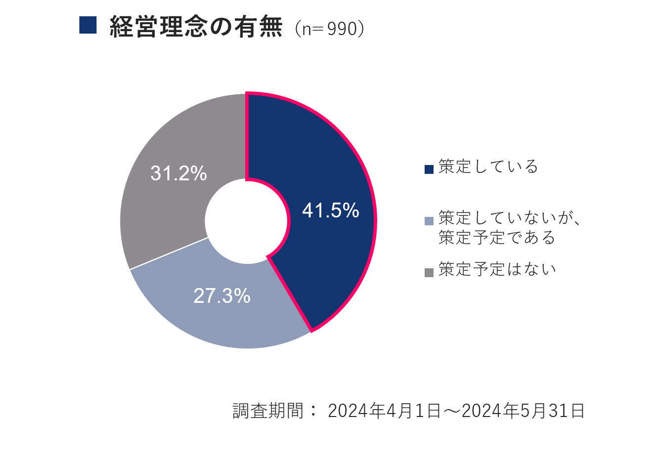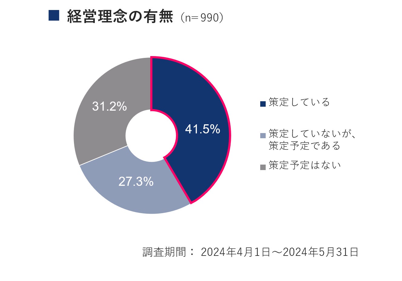 ①企業の存在意義を示す経営理念を策定している企業は41.5%