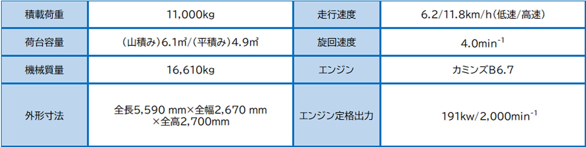 積載容量6.1㎥(山積み)・最大積載荷重11t