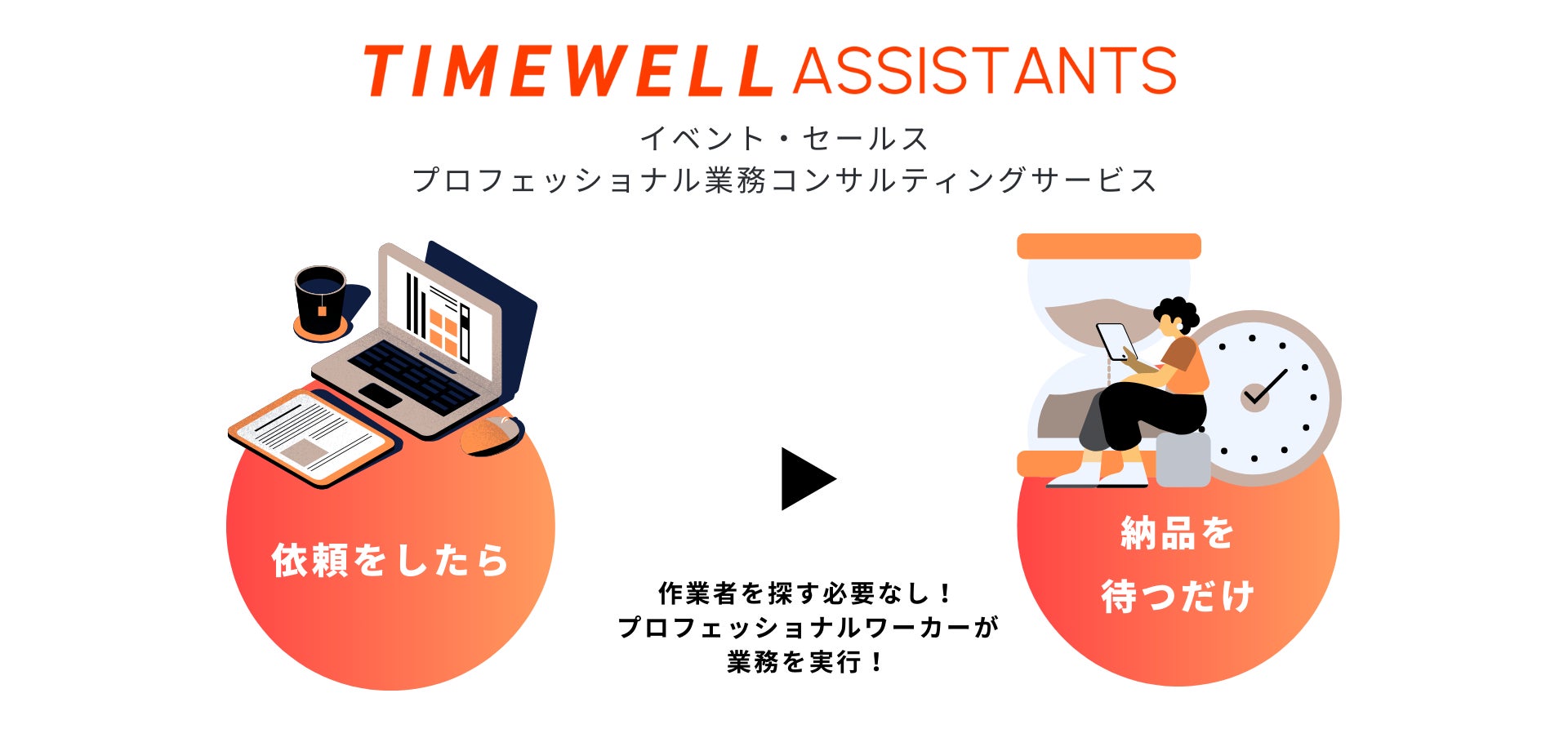 バックオフィス業務の効率化を目的として、イベント・セールスプロフェッショナル業務コンサルティングサービス「TIMEWELL ASSISTANTS」を実装しました。AIにより適切な人材をマッチングし、業務代行を効率的に運用することで、バックオフィス業務の効率化を実現しました。
