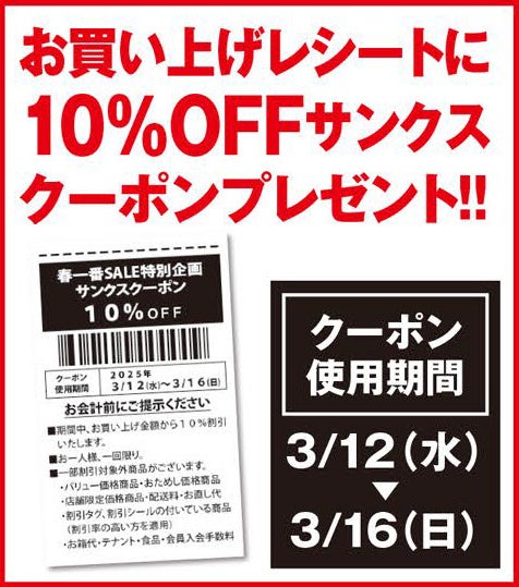 3/9(日)まで、お買い上げレシートに