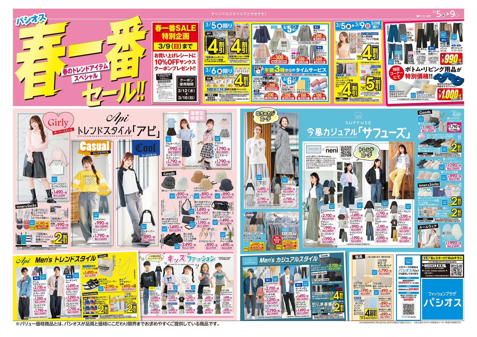 【春一番セール!!】ファッションプラザ[パシオス]にて3/5(水)よりスタート!お買い上げの方にレシートクーポンプレゼントも!