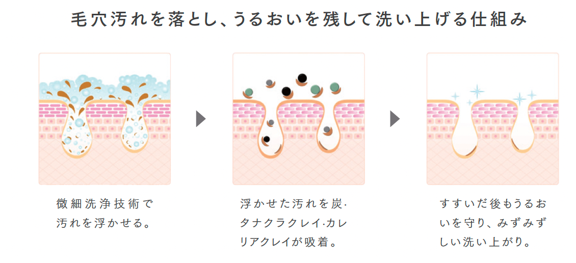 微細洗浄技術により浮き上がった汚れを残さずオフするために、炭*²と2種のクレイ*³を高配合。