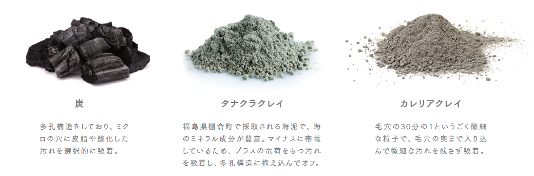 そのためにたどり着いたのが、微細洗浄技術と炭、2種のクレイという角栓撃退レシピ。
