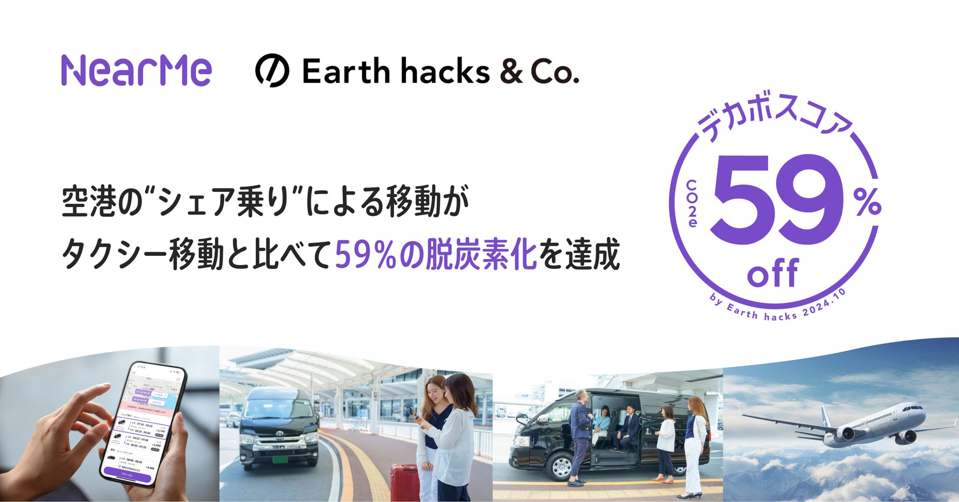 生活者の声をもとに、脱炭素関連商品・サービスや事業の開発を目指す生活者共創型プラットフォームを展開するEarth hacks株式会社(本社:東京都渋谷区、代表取締役社長:関根澄人、以下「Earth hacks」)は、移動の課題に取り組むソーシャルデザインカンパニーの株式会社NearMe(本社:東京都中央区、代表取締役社長:髙原幸一郎、以下「ニアミー」)が提供する『エアポートシャトル』を使った“シェア乗り”による移動にデカボスコア提供を開始しました。今後、両社は移動に関する生活者の脱炭素ライフスタイルへの行動変容に向け、イベントやメディアでの情報発信などの連携を進めてまいります。