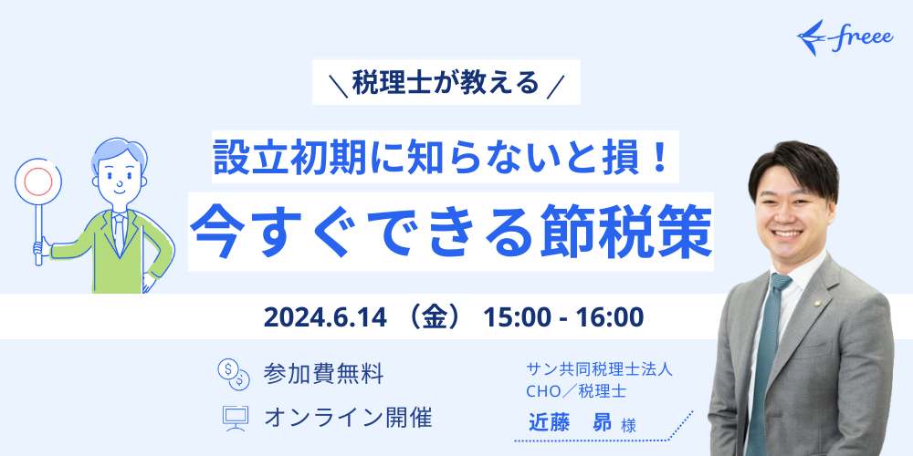 【6/14開催 無料オンラインセミナー】設立初期に知らないと損!今すぐできる節税策 - 税理士 近藤昴が解説 -