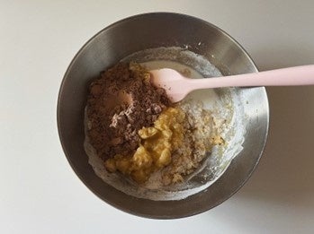 チョコレートファッジ風味のプロテイン入り!こっくりバナナの米粉マフィン