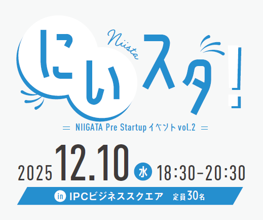起業や新たな挑戦の”はじめの一歩”を応援する「にいスタ! NIIGATA Pre Startup イベントVol.1~きっかけは、ここにある。はじめの一歩を新潟から。~」を11月14日に開催します。